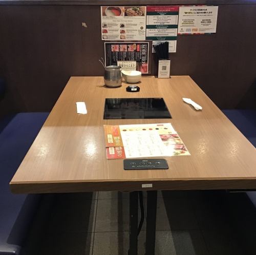 たくさん置いても困らない広々としたテーブル席です。IHコンロなのでお子様とご一緒でもご安心ください。